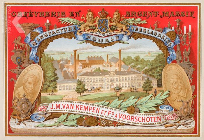 De voorplaat van de Franstalige catalogus die Van Kempen had laten maken ter gelegenheid van de wereldtentoonstelling in Parijs, staat bol van verwijzingen naar de voor die tijd succesvolle, moderne fabriek. Deze wordt in vol ornaat, goud omlijst, gepresenteerd met rokende schoonstenen in een lommerrijke omgeving. Naast deze rokende schoorstenen is links in de achtergrond een trein te zien die het zilver vanuit de fabriek transporteert.